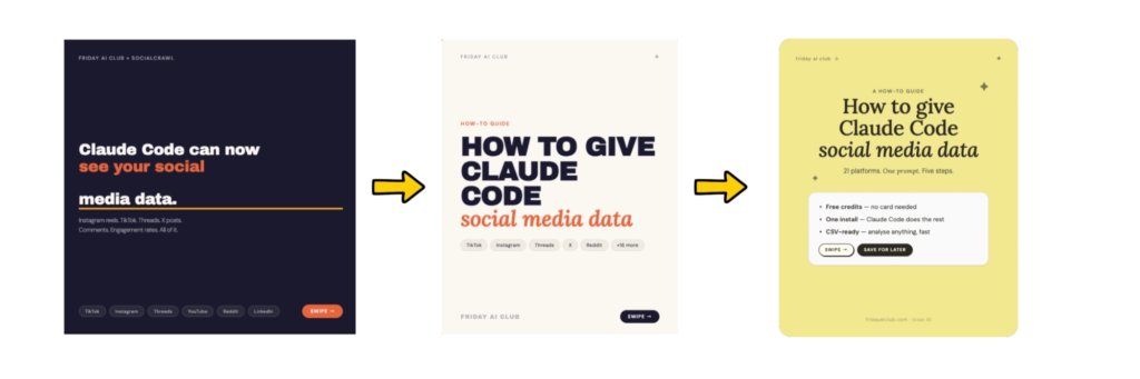 One of the more useful things about creating a carousel with Claude Design is that you can experiment quickly.